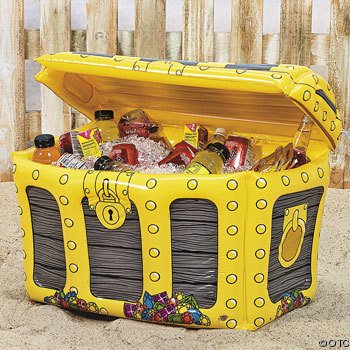 "Inflatable Pirate Treasure Chest Cooler." Feature